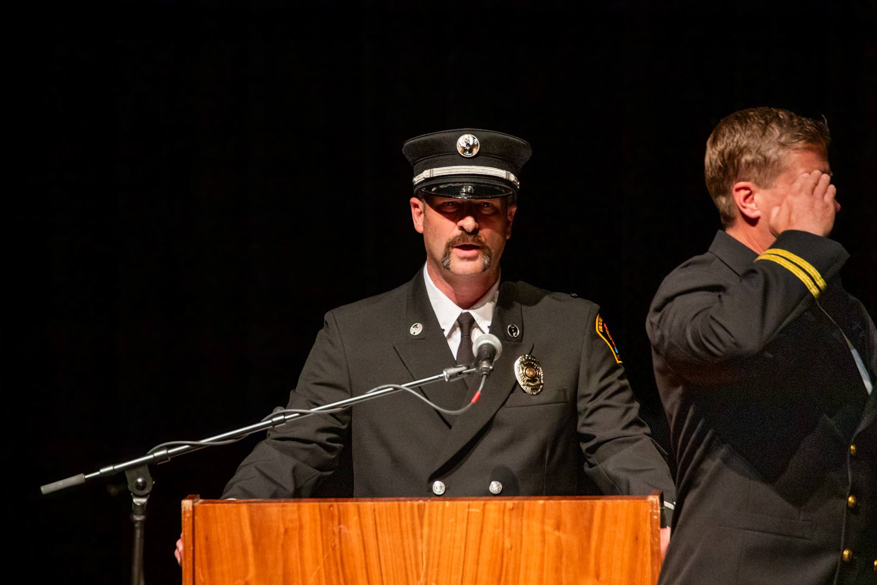 The ceremony itself was a truly beautiful and moving occasion. We were honored to have Lt. Craig Jamison’s powerful rendition of the National Anthem set a patriotic tone. The precision and dignity of the Honor Guard were exemplary, and Deputy Chief Don Wood served as a gracious and effective host for the proceedings. Many heartfelt speeches were delivered, including thoughtful remarks from Mayor Patrick Collins, all underscoring the significance of this transition and the deep respect held for both Chiefs.