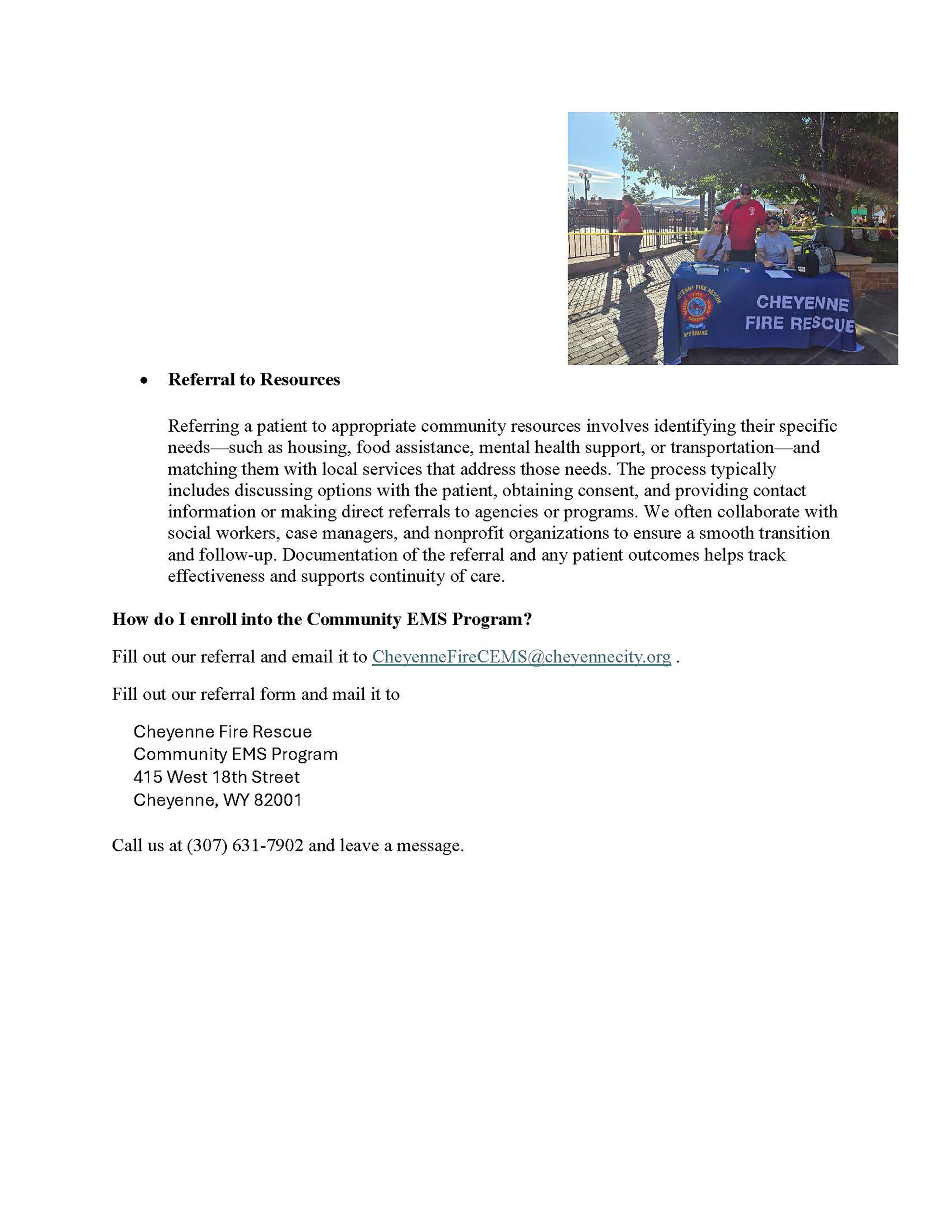 - While firefighters enjoy participating in community events, our first priority is providing quality, timely, and professional emergency services to those who live in, work in, and visit the City of Cheyenne. We may not be able to accommodate all event requests due to firefighter training and other scheduling conflicts.
